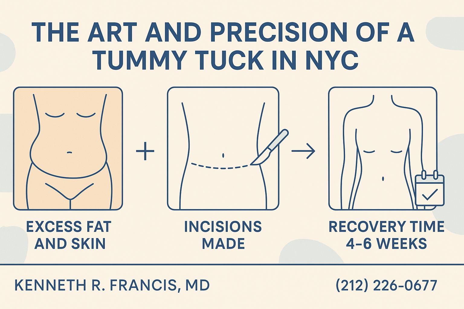 A tummy tuck in NYC can change your life. Many come to us feeling frustrated by stubborn belly fat or loose skin that just won’t tighten no matter how much they diet or exercise. The desire is clear: a flatter, firmer midsection that looks and feels natural. At Kenneth R. Francis, MD, we understand what this means to you—not just physically, but emotionally. Our goal is to help you feel confident in your skin again with results that match your body goals and lifestyle.